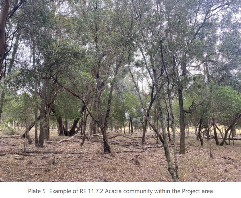 Threatened ecological communities will also be impacted. The wind farm site contains some areas of regulated vegetation of Category B (remnant), Category C (high-value regrowth) and Category R (regrowth watercourse and drainage feature area).
